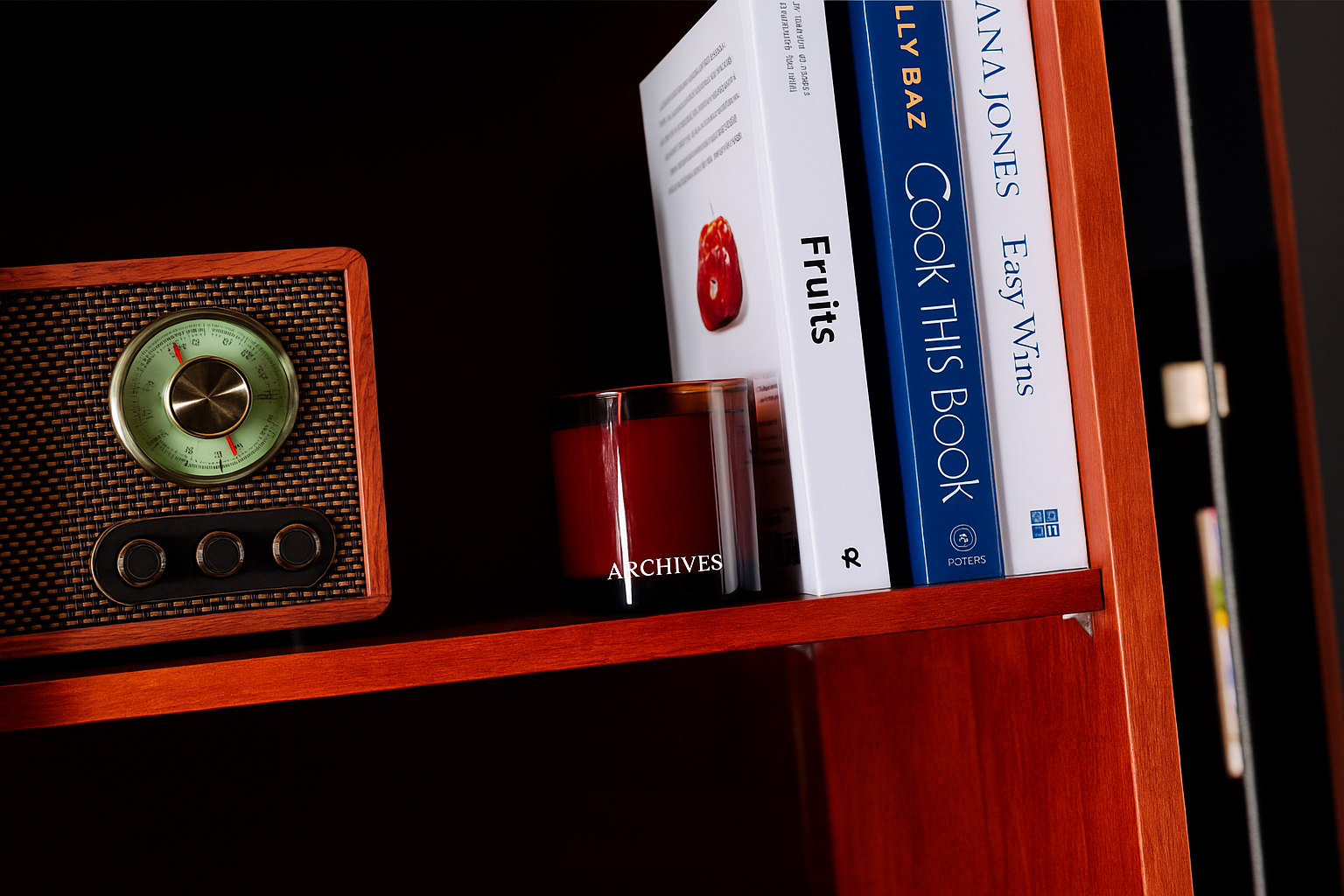 Inspirée par mon dernier séjour à Londres, cette bougie capture l’essence des librairies feutrées et des rues pavées après la pluie. ARCHIVES évoque la chaleur d’un vieux livre ouvert sous une lampe tamisée, le murmure des pages qu’on feuillette et le parfum boisé du santal mêlé au cuir et au thé noir. C’est la nuit londonienne classique en version parfumée — intemporelle et profondément apaisante.