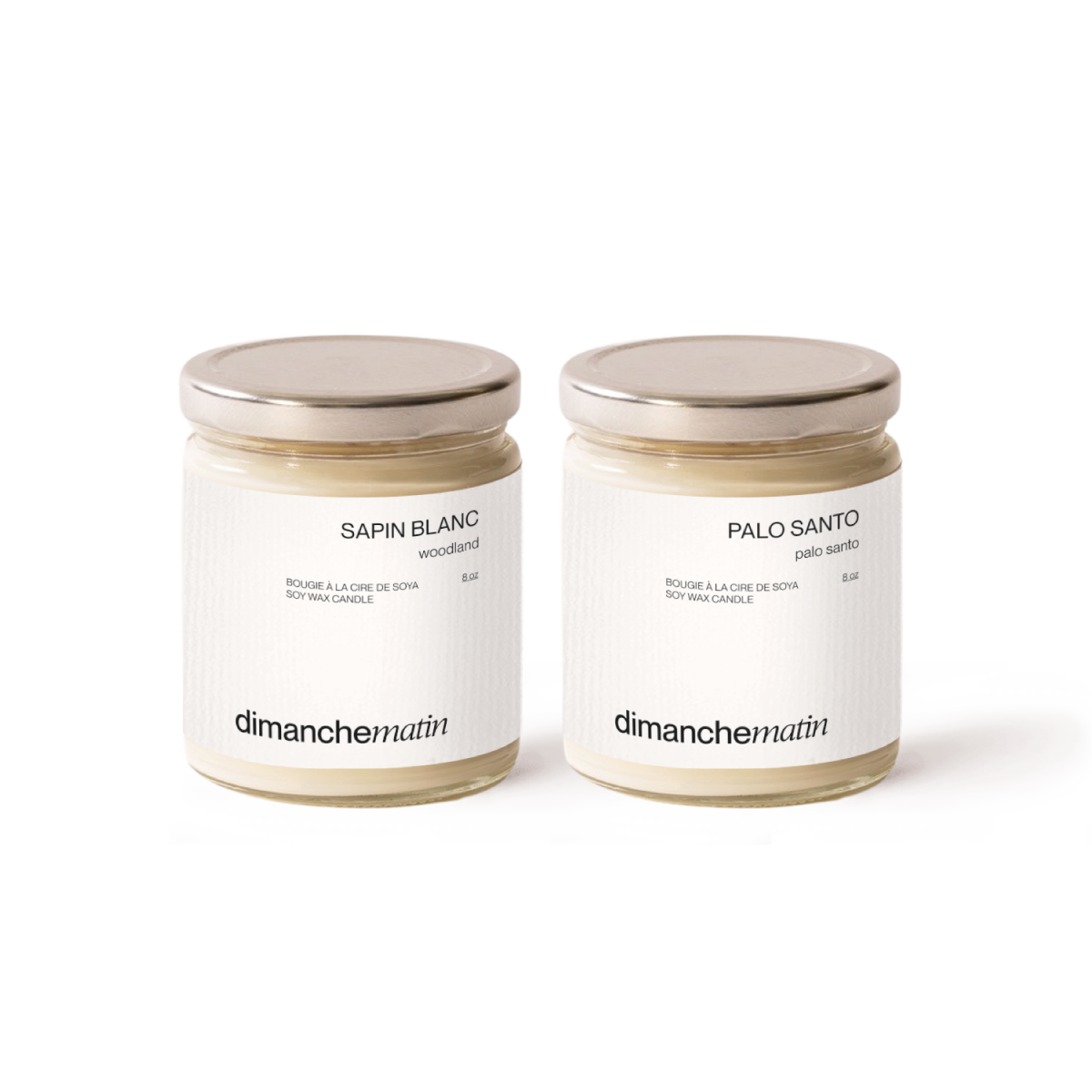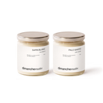 une bougie Sapin Blanc (notes: Pin, Agrumes, Sapin Baumier) une bougie Palo Santo (notes: Encens, Cyprès, Bois de Santal) une jolie boîte cadeau